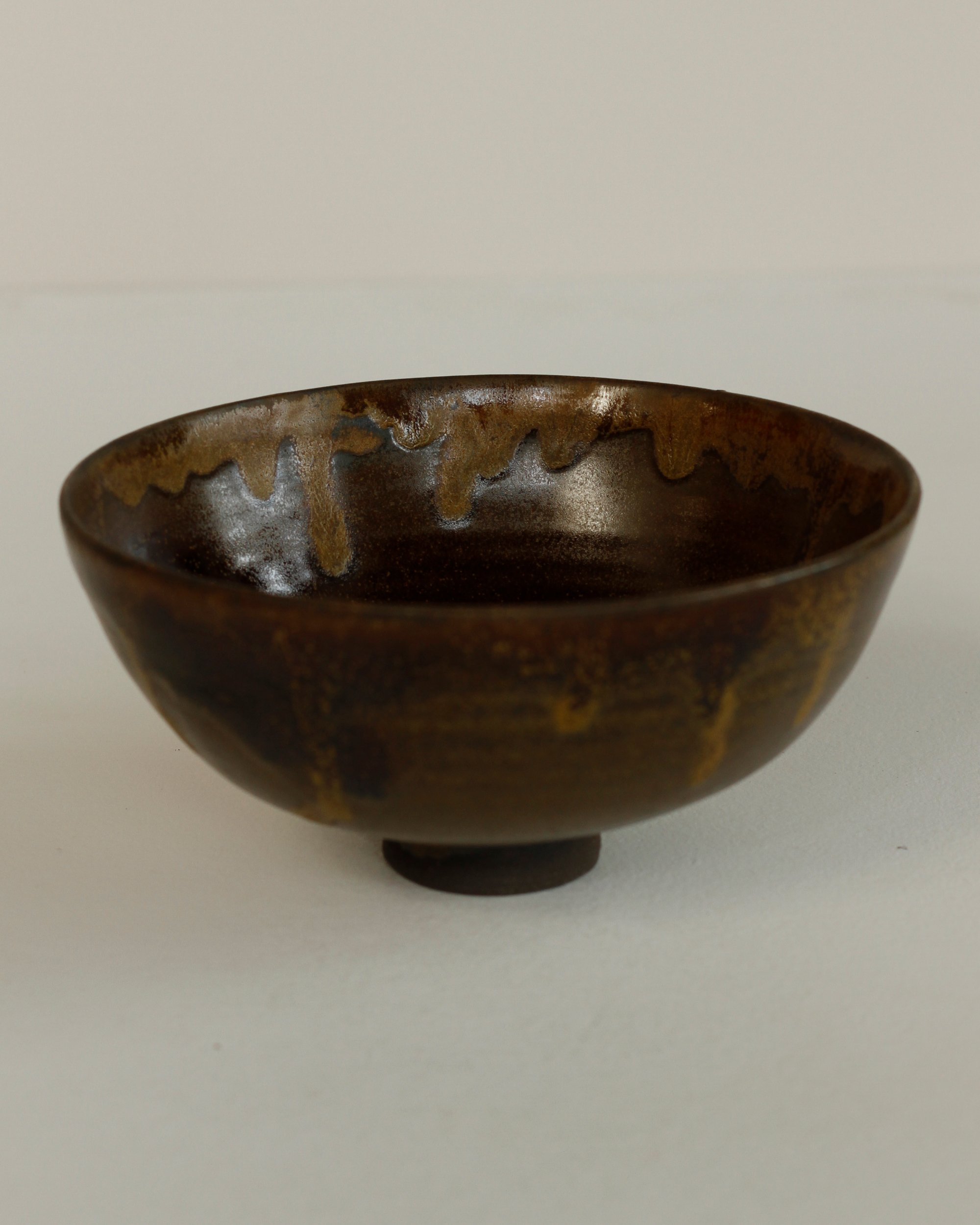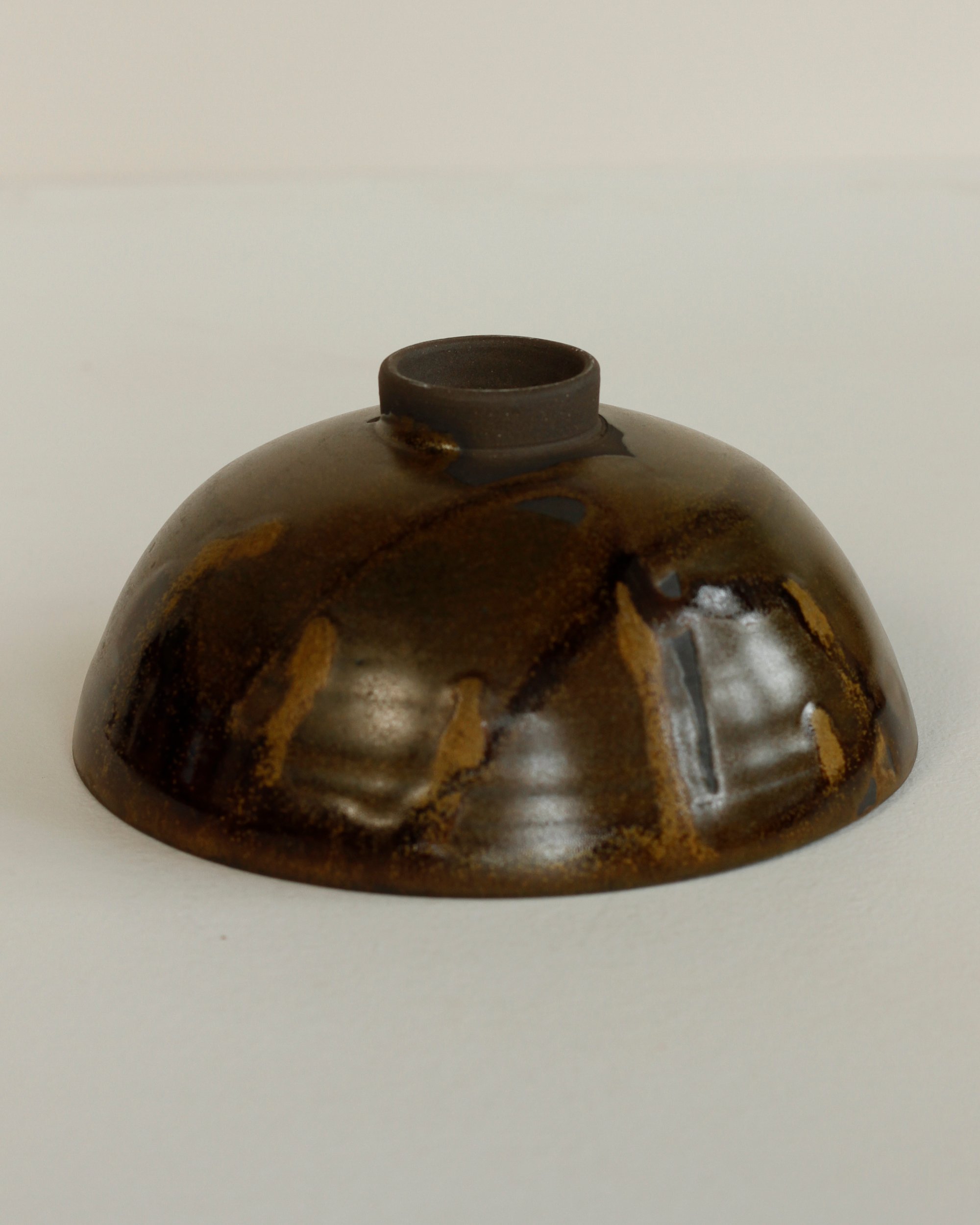Handmade and thrown using a brown/black vulcan stonewear with a satin iron rich teadust glaze.