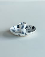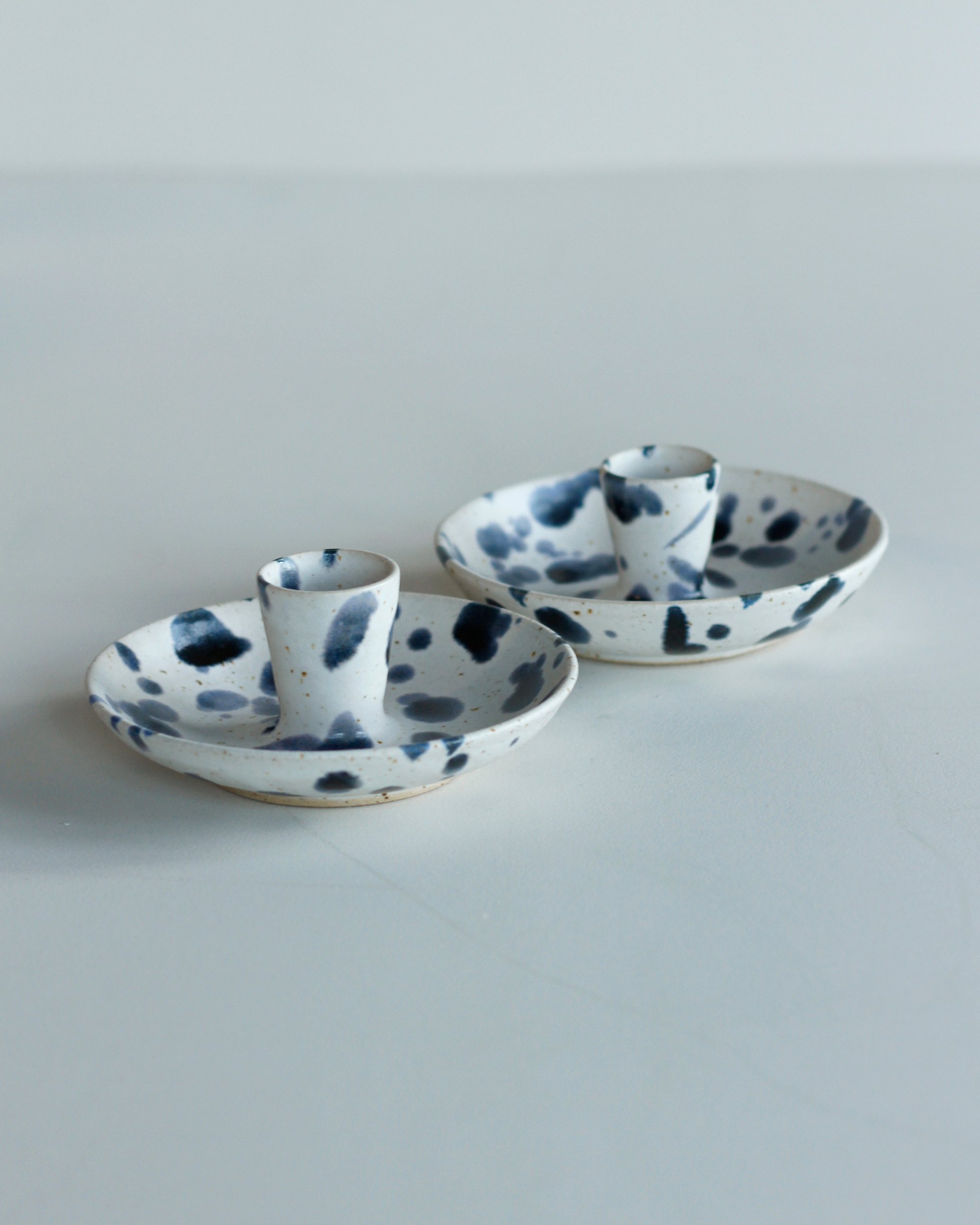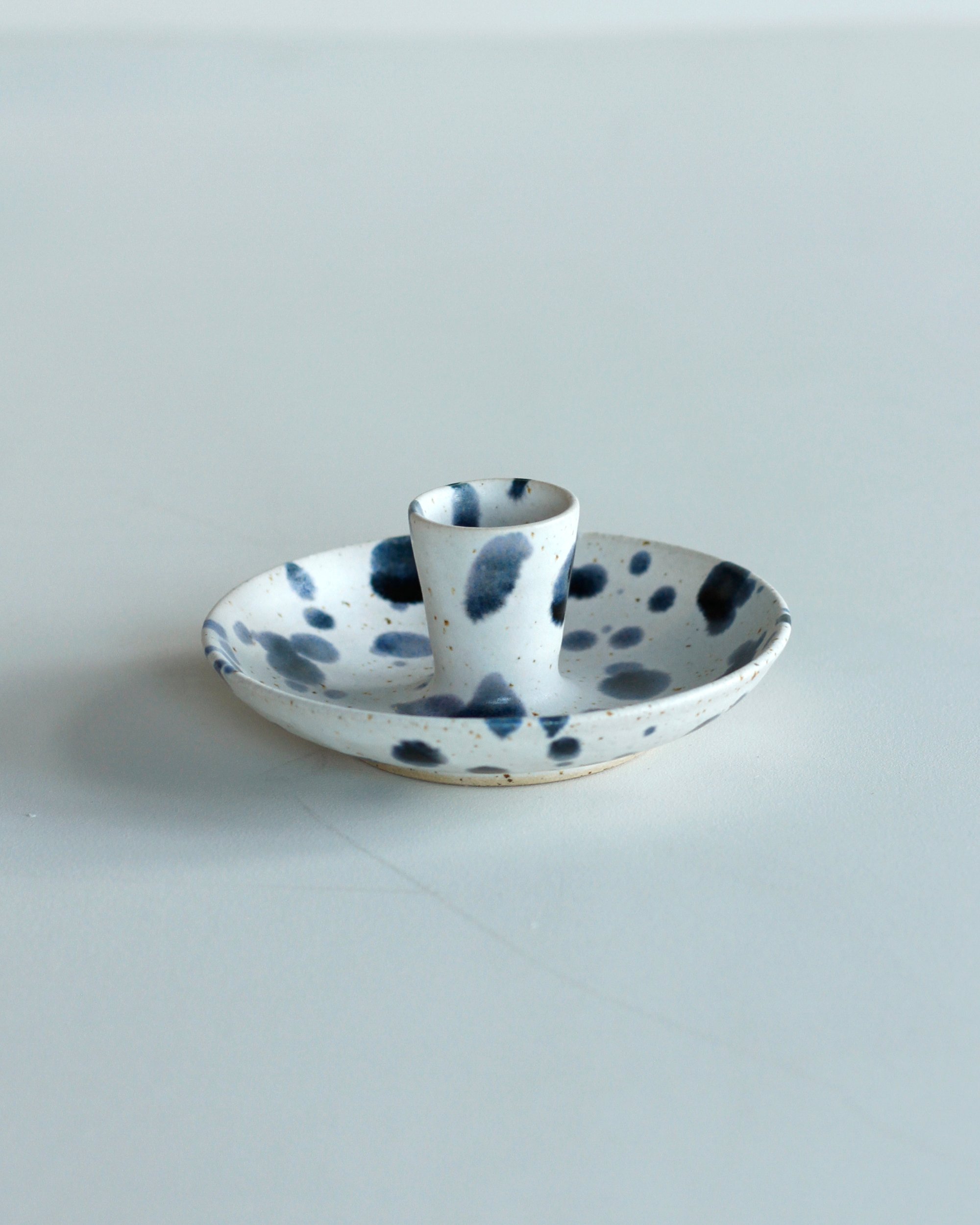 Handmade using a blend of stonewear clays with a matt white and blueberry glaze.