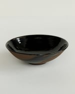 Handmade and thrown using a brown/black vulcan stonewear with glossy black glaze.