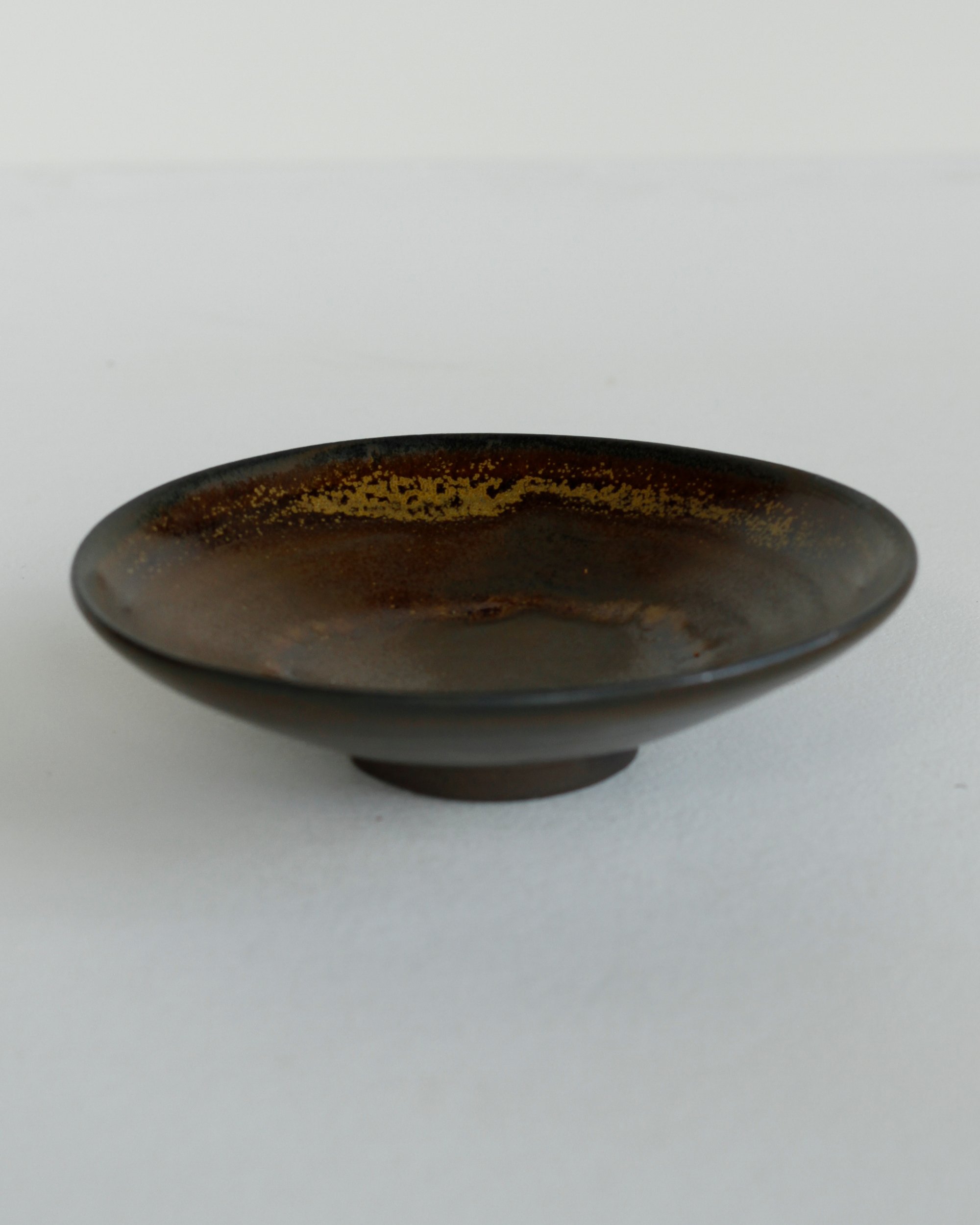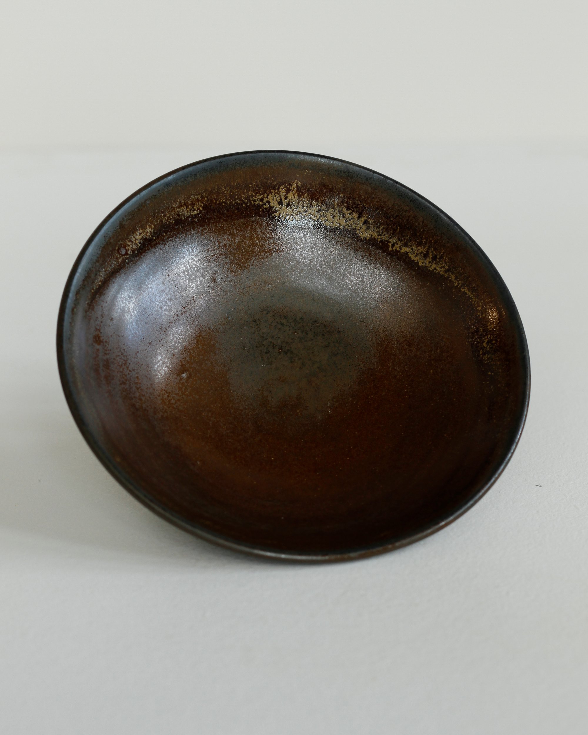 Handmade and thrown using a brown/black vulcan stonewear with a glossy iron rich teadust glaze.