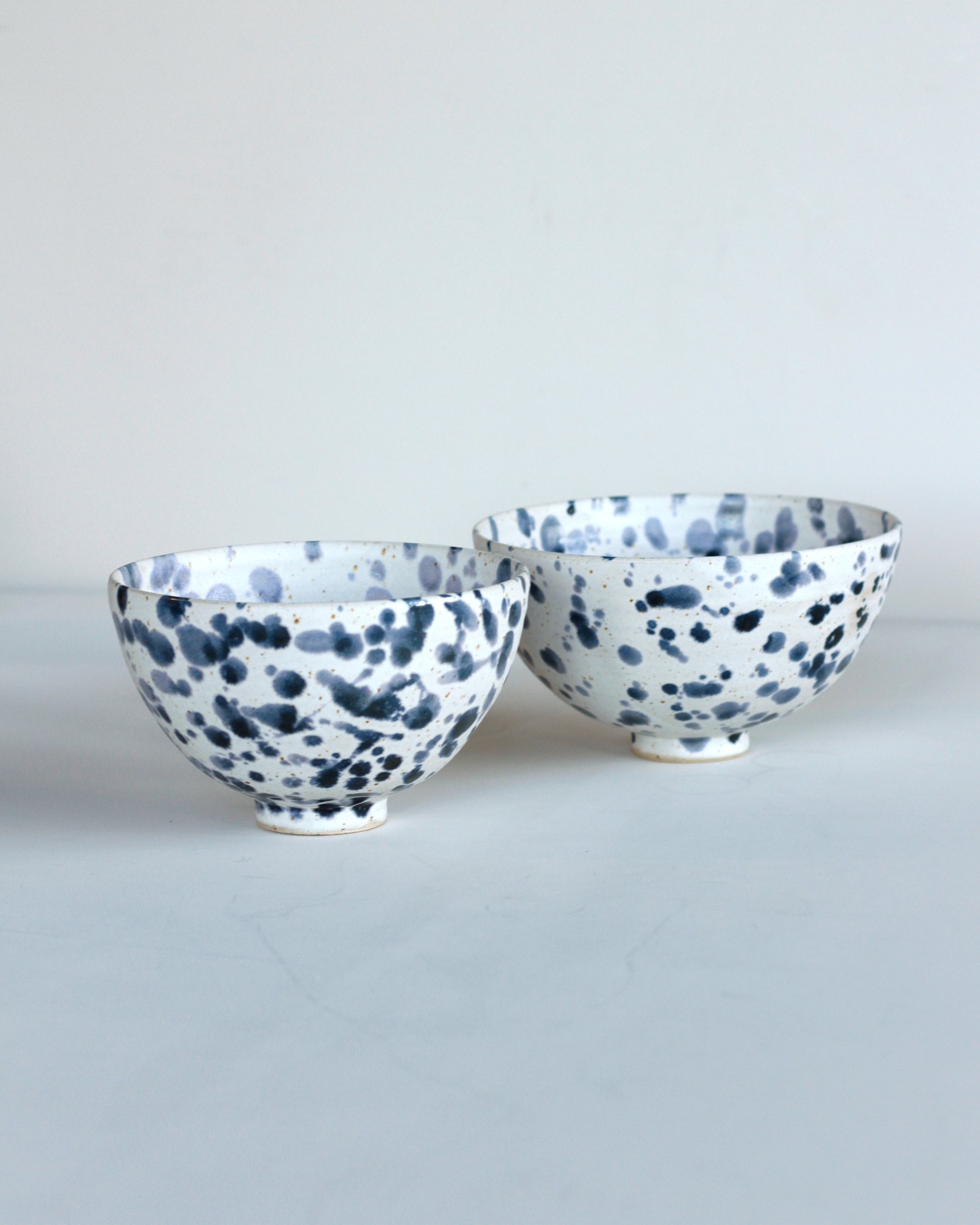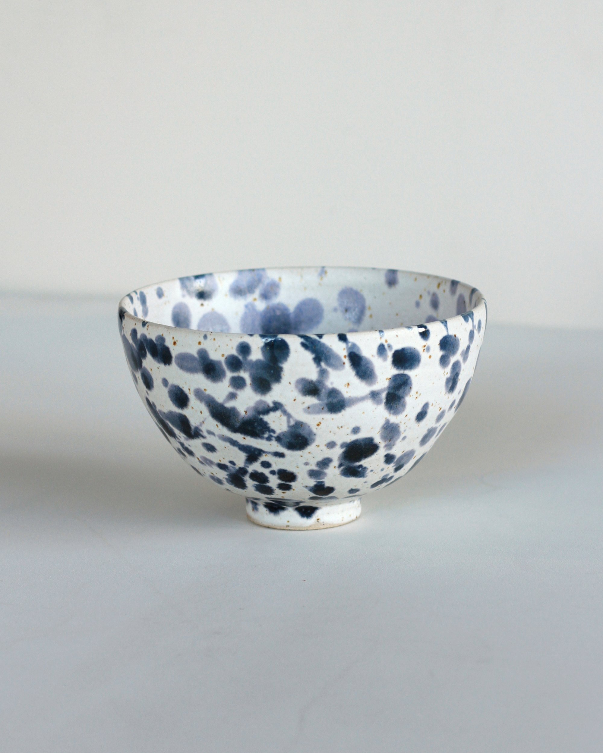 Made with flecked stoneware matt glaze with blueberry drips.